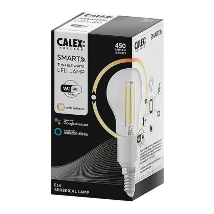 Je kunt ook meerdere Calex smart lampen koppelen aan onder meer een Google Home of Amazon Alexa apparaat. Hierdoor wordt het mogelijk om Calex verlichting met jouw eigen stemgeluid te bedienen. Door het geven van eenvoudige instructies als; ‘Hey Google, dim de lamp boven de tv’, heb je dit al binnen no-time geregeld! Tevens kun je deze kogelvormige E14 Calex Smart verlichting bedienen via een officiële Calex Smart afstandsbediening. Deze Calex lamp werkt ook op een wandschakelaar, maar niet op een dimmerschakelaar. Hou daar rekening mee. Ben je op zoek naar Smart verlichting met een andere fitting of in een andere vorm? Klik dan hier om ons volledige assortiment te bekijken!