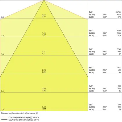 ![]() De kleurcode is een combinatie van de kleurweergave (CRI) en lichtkleur (Kelvin). Het eerste getal is de kleurweergave (1 = zeer slechte kleurweergave, 9 = maximale kleurechtheid). Het tweede en derde cijfer betreft de lichtkleur. Een lamp met kleurcode 830 heeft bijvoorbeeld een goede kleurweergave en straalt een warm wit licht uit (3000K), waar een lamp met de kleurcode 940 een uitstekende CRI heeft en een koel wit licht (4000K) uitstraalt. |