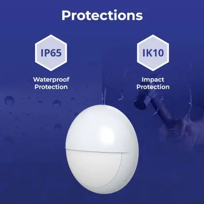 ![]() De IK waarde staat voor de slagvastheid en bescherming tegen vandalisme. Dit wordt uitgedrukt in combinatie met 2 cijfers (IK00 - IK10). Producten met IK00 zijn niet beschermd tegen weerstand, terwijl producten met IK10 weerstand bieden tegen schokken van 20 Joule en tevens vandaalbestendig zijn. |