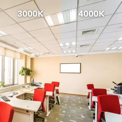 De kleurtemperatuur van 3000 Kelvin staat voor warm wit licht. Deze lichtkleur is voornamelijk geschikt voor gangen, hallen of trappenhuizen. Het is een verwelkomend licht met een prettige tint.