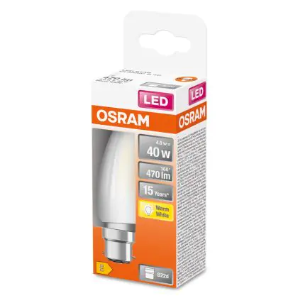 Osram LED B22D Kaars Filament Mat 4W 470lm - 827 Zeer Warm Wit | Vervangt 40W