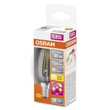Beschrijving Osram Superstar Classic LED E14 Kaars Filament Helder 4W 470lm - 822-827 Dim To Warm | Dimbaar - Vervangt 40W
