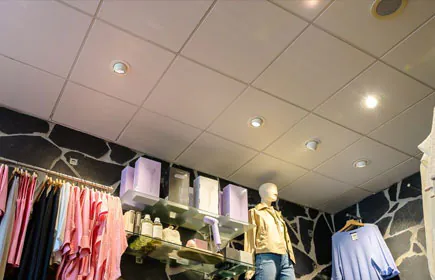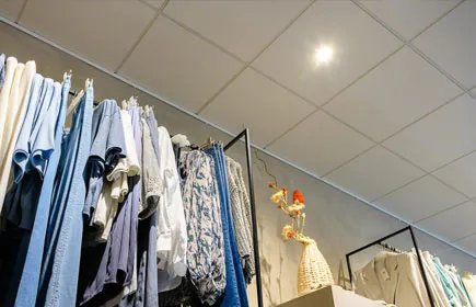 - In de winkel zijn uitsluitend wit gekleurde armaturen gebruikt, wat zorgt voor een rustig plafond. De bezoeker heeft hierdoor direct oog voor het assortiment (geen afleidingen).