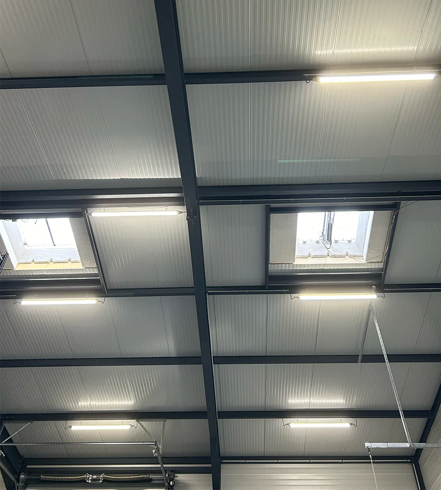 Nieuwe verlichtingsinstallatie in de magazijnaanbouw ...
