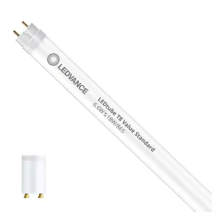 Beschrijving Voordeelpak 10x Ledvance LED Buis T8 Value (EM/Mains) Standard Output 6.6W 800lm - 865 Daglicht | 60cm - Vervangt 18W
